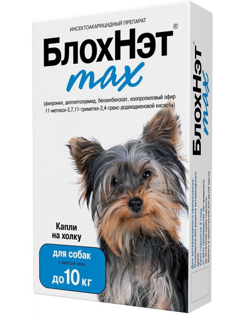 БлохНэт max капли для собак и щенков предназначены для лечебной и профилактической обработки собак и щенков от блох, иксодовых и саркоптоидных клещей, вшей, власоедов, ушных клещей. БлохНэт max эффективен против внешних паразитов на всех стадиях их развития.