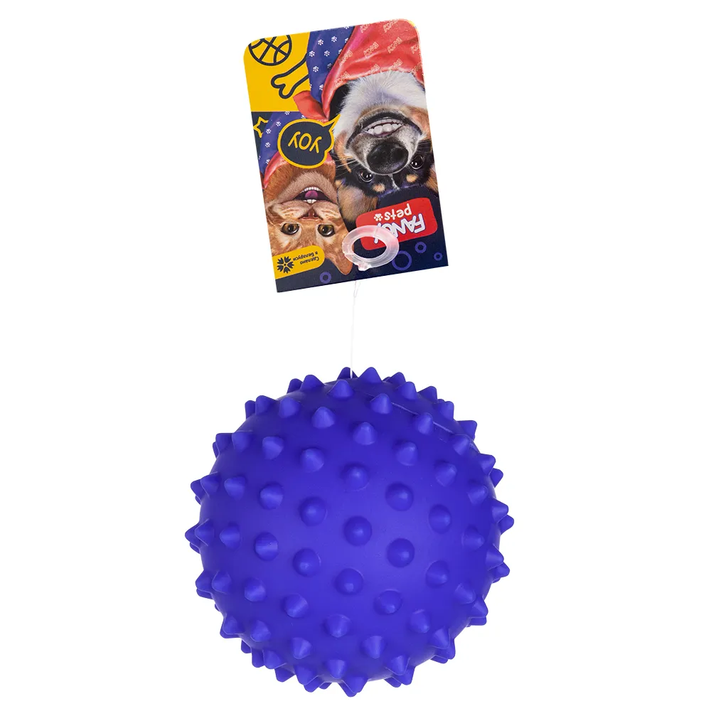 Массажный мяч изготовлен из прочного и безопасного материала - 100% пластизоль, он обеспечивает долговечность и надежность даже при интенсивных играх. Мячик не содержит пищалки, собака не сможет её вытащить и проглотить, не издает неприятных звуков. Резиновый мячик больше, чем просто игрушка. Его текстурированная поверхность с эффектом массажа помогает не только снять напряжение, но и поддерживает здоровье десен вашей собаки.