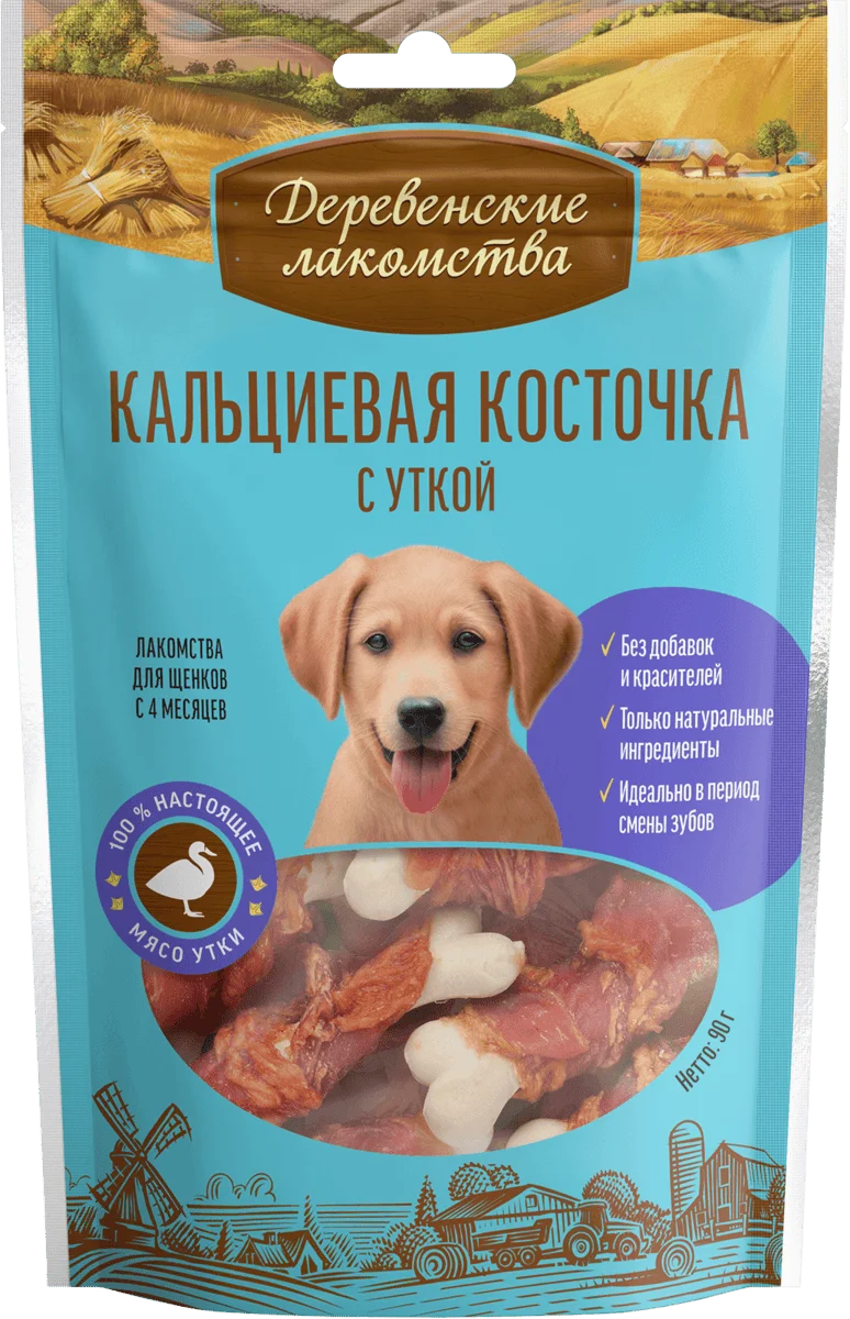 Лучшее для вашего щенка — молочная косточка, которая обогащена кальцием, так необходимым для формирования крепких костей и зубов. Мясо утки деликатно дополняет вкусовую палитру.
