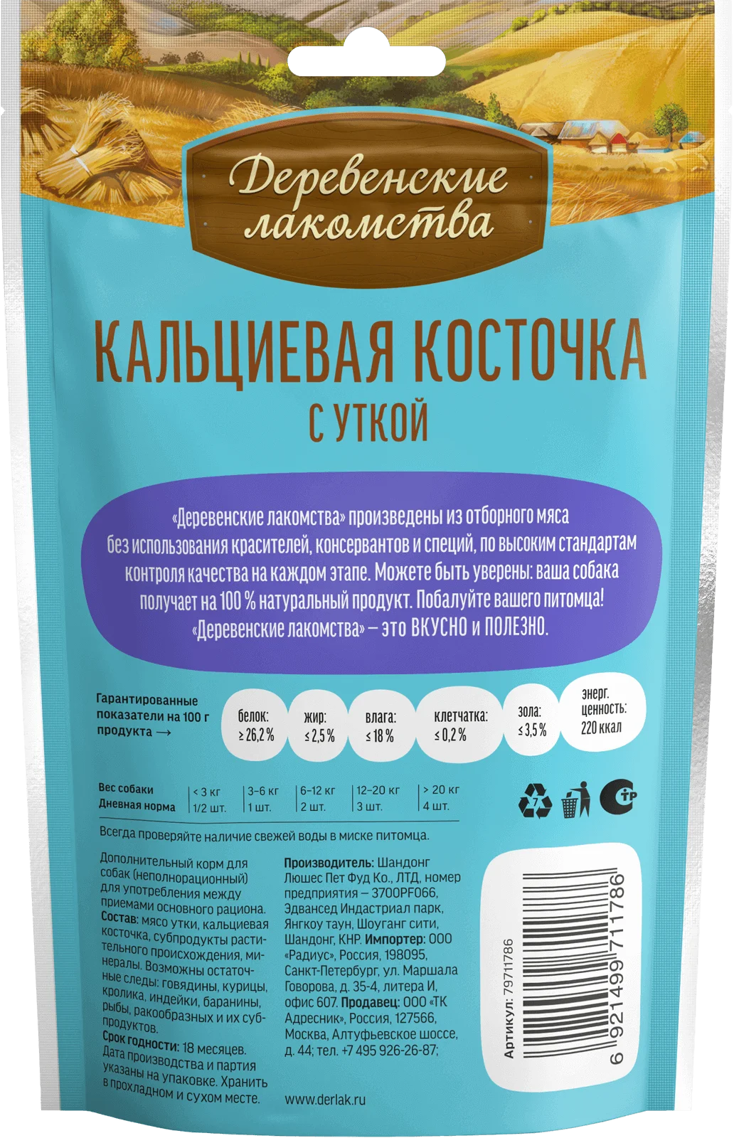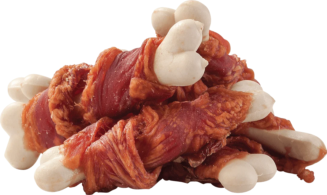 Состав: утиное филе, кальциевая косточка (рис, кукурузный крахмал, картофельный крахмал, растительный протеин, фосфат кальция, мука).