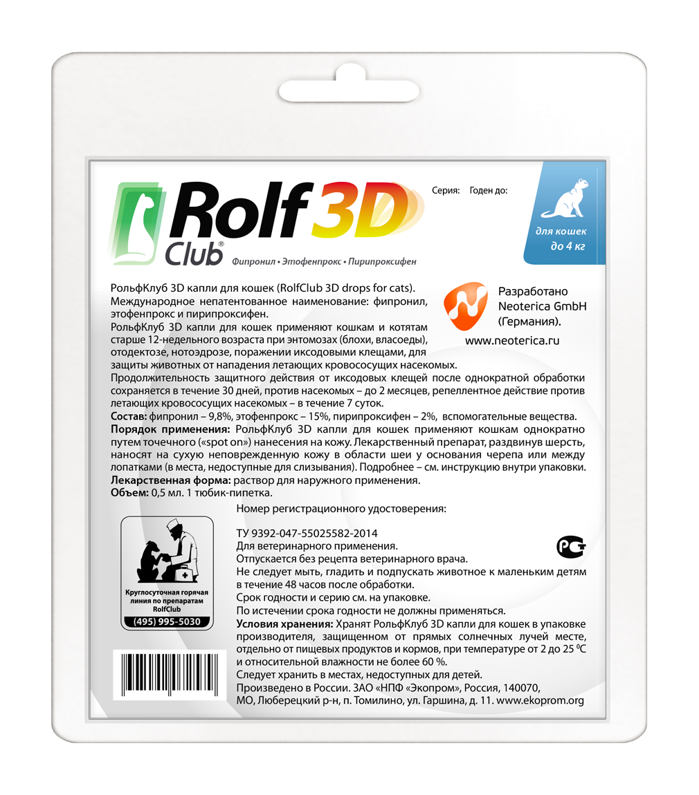 Капли на холку РольфКлуб 3D для кошек до 4 кг