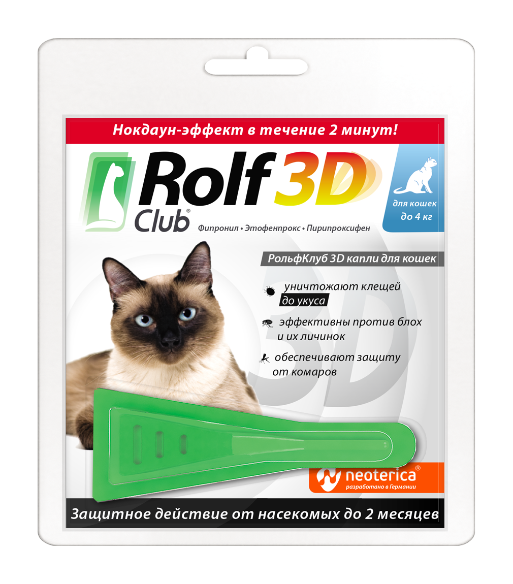 Капли для кошек RolfClub 3D, до 4 кг.