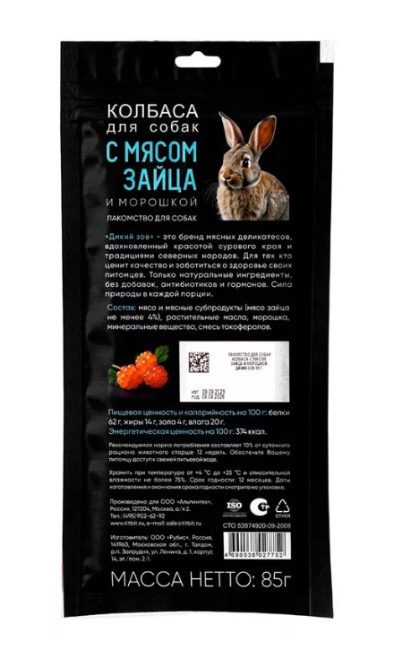 Серия «Дикий зов» – это вдохновленные природой мясные деликатесы, созданные по традициям северных народов. Колбаса с мясом зайца и морошкой – это полностью натуральное лакомство без искусственных добавок, антибиотиков и гормонов.