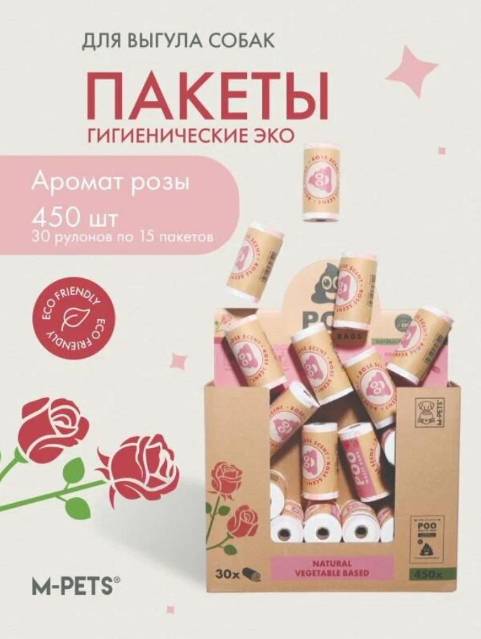 Экологически безопасные пакеты для выгула собак от M-Pets обеспечивают комфортную прогулку с питомцем без вреда для окружающей среды. Гигиенические изделия изготовлены исключительно из 100% компостируемой смеси био-кукурузного крахмала, который со временем разлагается в почве, не оставляя токсичных отходов.
