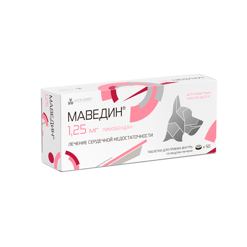 Маведин 1,25 содержит в 1 таблетке пимобендана 1,25 мг. По внешнему виду Маведин представляет собой плоские круглые таблетки от светло-розового до красного цвета, допускаются более темные или светлые вкрапления. Поверхность таблеток гладкая, с фаской, двумя разделительными бороздками на одной стороне и логотипом на другой стороне.