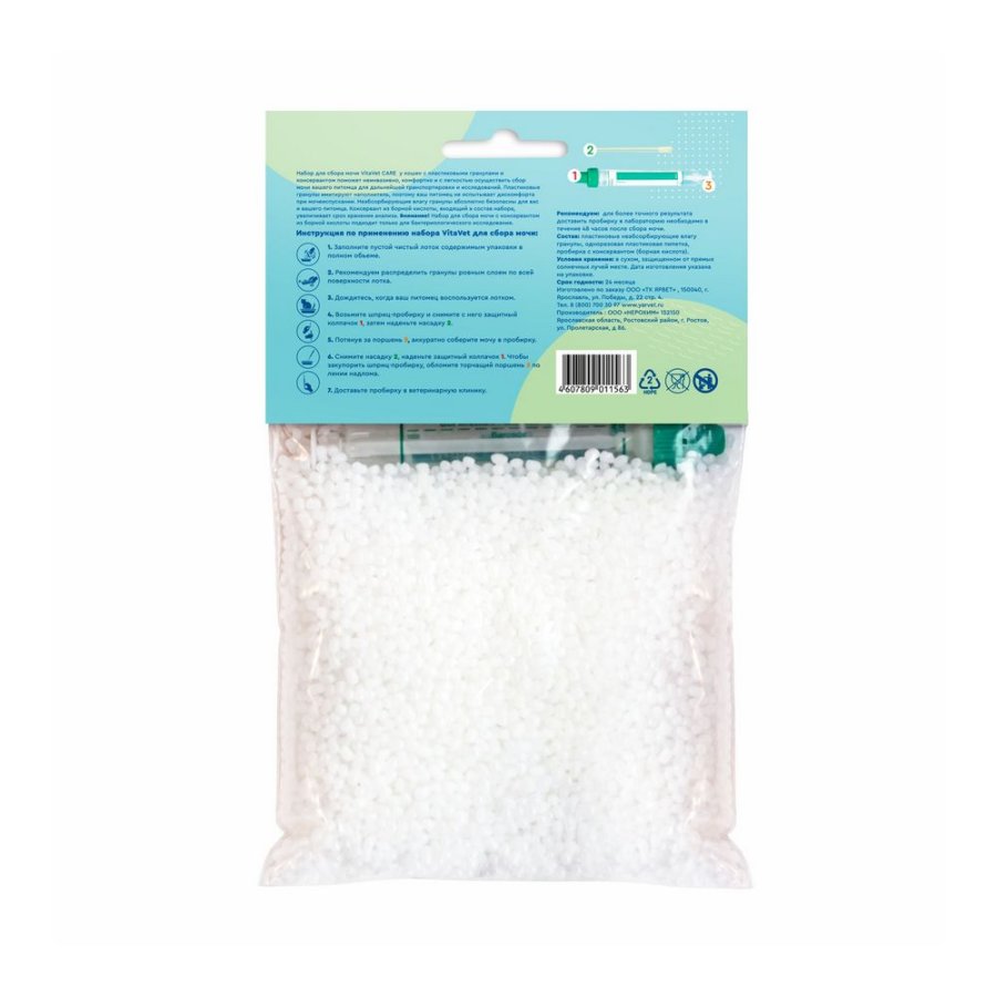 Набор для сбора мочи VitaVet CARE для кошек с пластиковыми гранулами и консервантом поможет неинвазивно, комфортно и с легкостью осуществить сбор мочи вашего питомца для дальнейшей транспортировки и исследований. Пластиковые гранулы имитируют наполнитель, поэтому ваш питомец не испытывает дискомфорта при мочеиспускании.