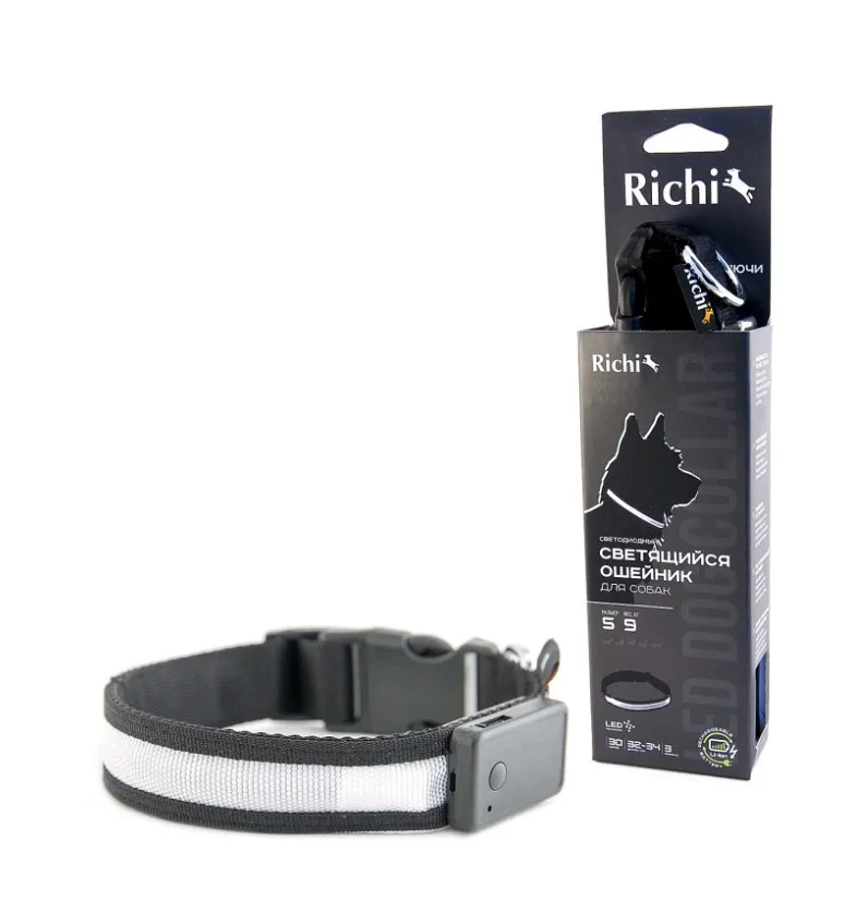 Светящийся ошейник «Richi» - это, современный аксессуар для Вашего любимого питомца. Вы не потеряете собаку из виду - ошейник поможет видеть ее при прогулке в темное время суток. Это также является гарантией Вашей безопасности - никто не осмелится напасть на Вас, заметив рядом верного четвероногого друга.