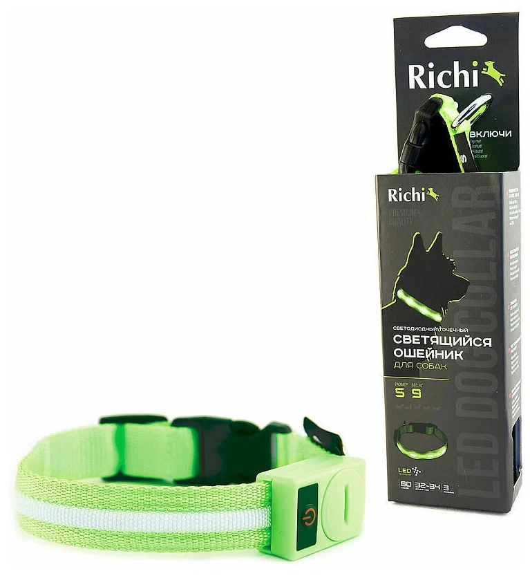 Светящийся ошейник «Richi» - это, современный аксессуар для Вашего любимого питомца. Вы не потеряете собаку из виду - ошейник поможет видеть ее при прогулке в темное время суток. Это также является гарантией Вашей безопасности - никто не осмелится напасть на Вас, заметив рядом верного четвероногого друга.