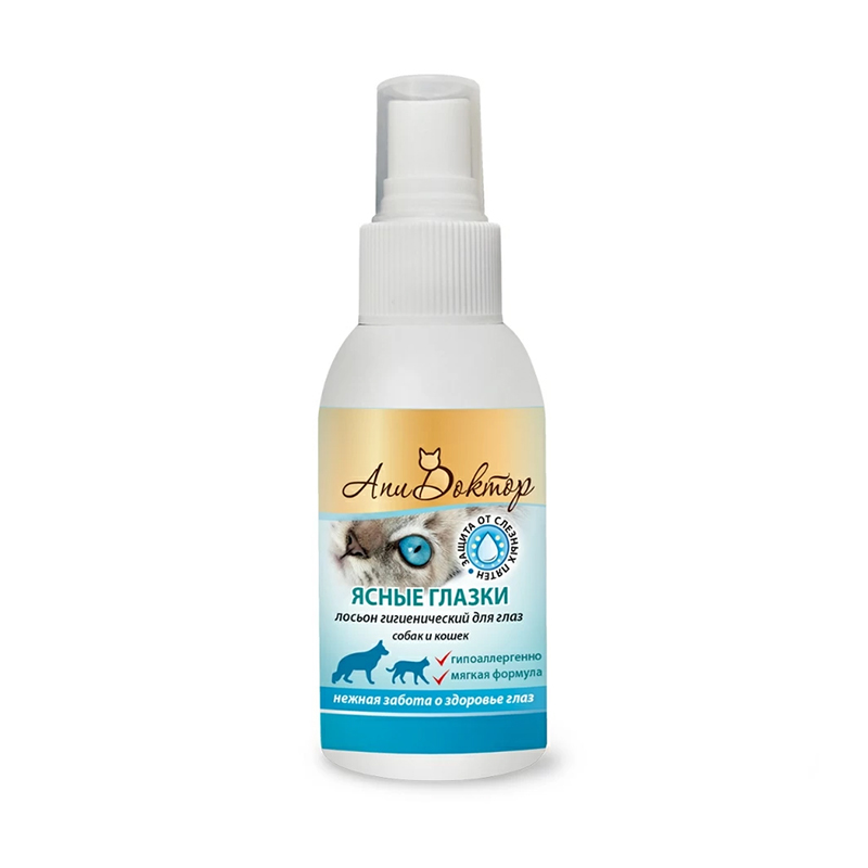 Снижает риск развития офтальмологических заболеваний у животного. Подходит щенкам и котятам. Лосьон применяется для ежедневного гигиенического ухода за глазами животного или по мере необходимости.