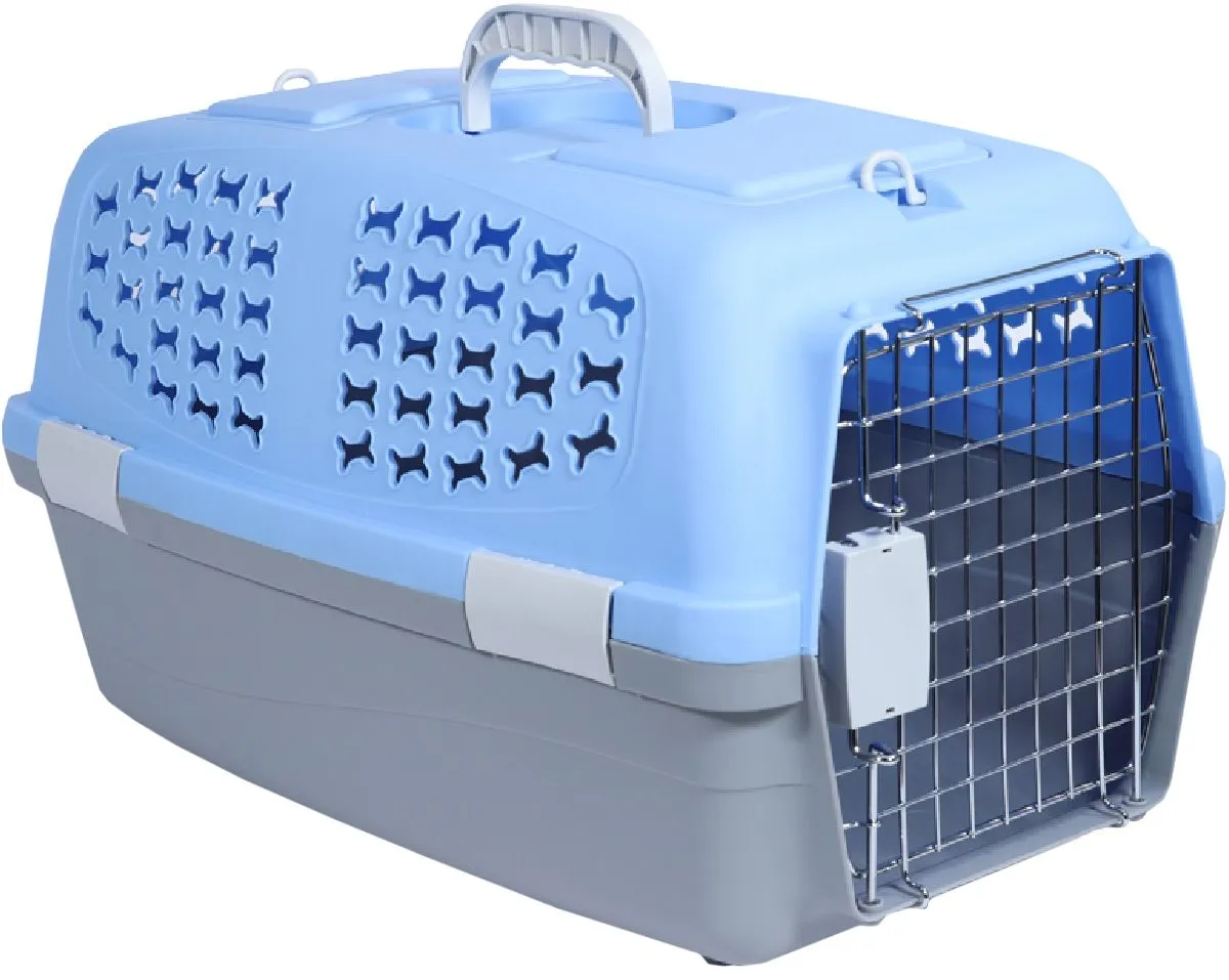 Переноска для животных создаст комфортные условия питомцу во время его транспортировки. Переноска оснащена надежно закрывающейся металлической дверцей, вентиляционными отверстиями в виде косточек и удобной ручкой для транспортировки. Имеет кармашек для ветеринарного паспорта и окошко, чтобы погладить животное, не открывая дверцу. Легко разбирается и моется.
