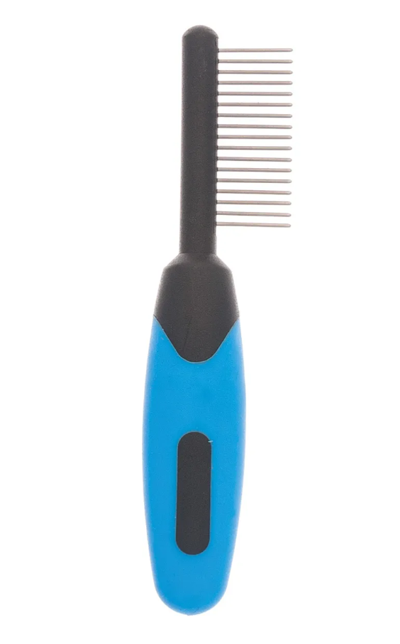 Расческа серии MINI с редкими металлическими зубьями предназначена для небольшой собачки или щенка, мелкой кошечки или котенка, кролика, шиншиллы, морской свинки и любых крупных грызунов. Также она подходит для обработки морды, ушей, шеи, подмышек, лап, хвоста и других труднодоступных и нежных мест животных средних и крупных пород.