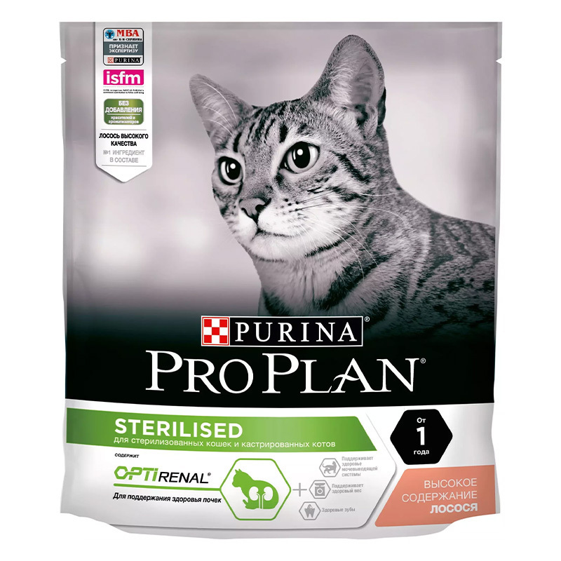 Линейка кормов PRO PLAN Sterilized — это сбалансированное питание, полностью отвечающее потребностям стерилизованных кошек, которое способствует укреплению здоровья мочевыделительной системы и поддержанию оптимального веса питомца. Корм содержит формулу OPTIRENAL — специальное сочетание питательных веществ, включающее антиоксиданты, аргинин и жирные кислоты омега-3, которые поддерживают здоровье почек животного.
