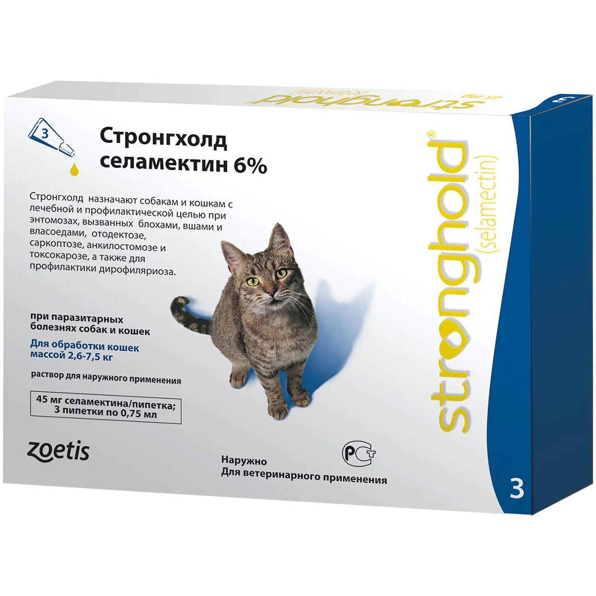 Стронгхолд 45 мг. для кошек массой 2,6-7,5 кг УПАКОВКА 3 пипетки