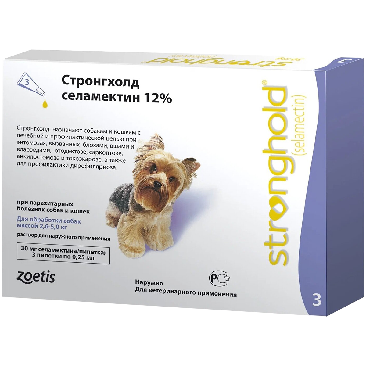 Стронгхолд 30 мг для собак массой 2,5-5 кг УПАКОВКА 3 пипетки