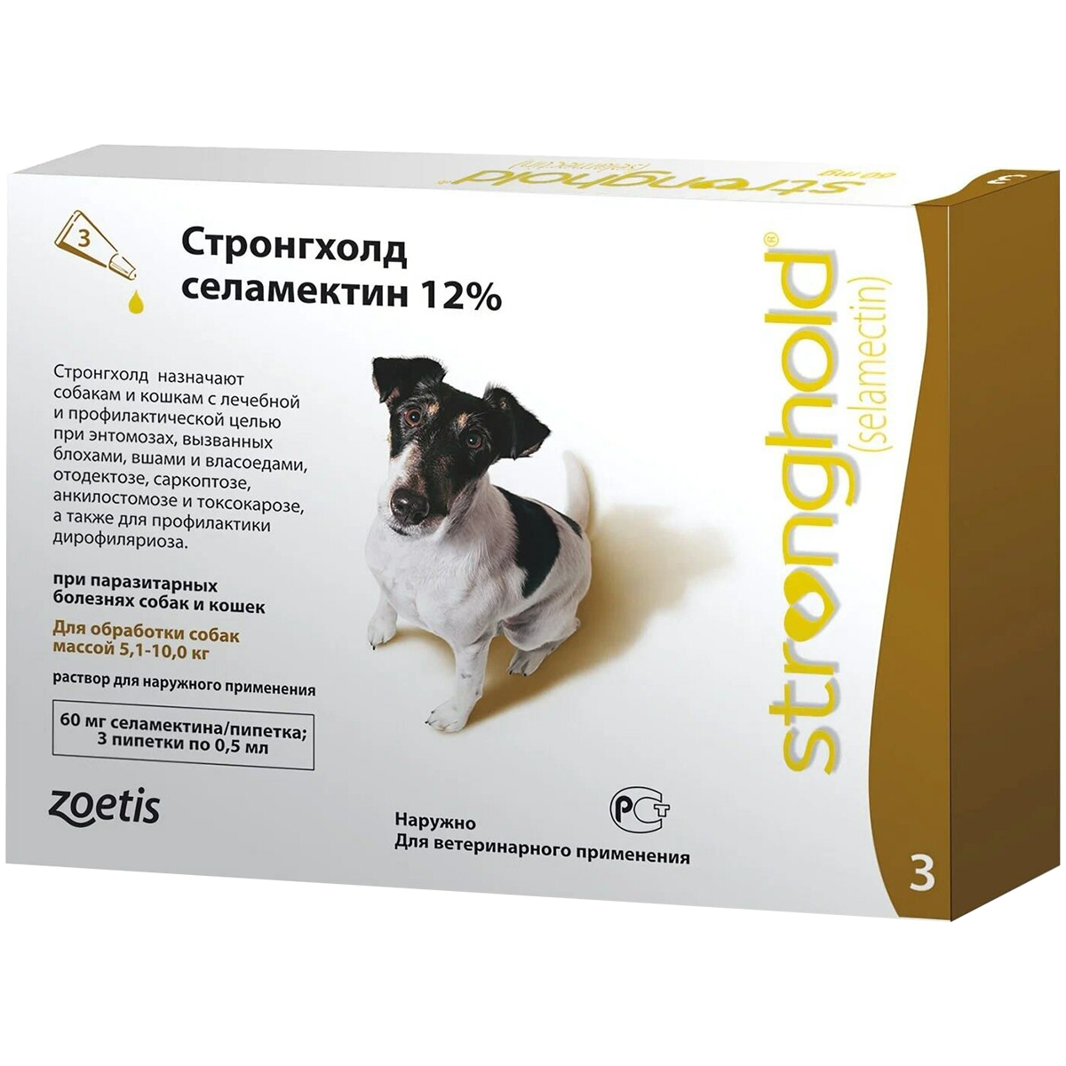 Стронгхолд 60 мг для собак массой 5-10 кг УПАКОВКА 3 пипетки