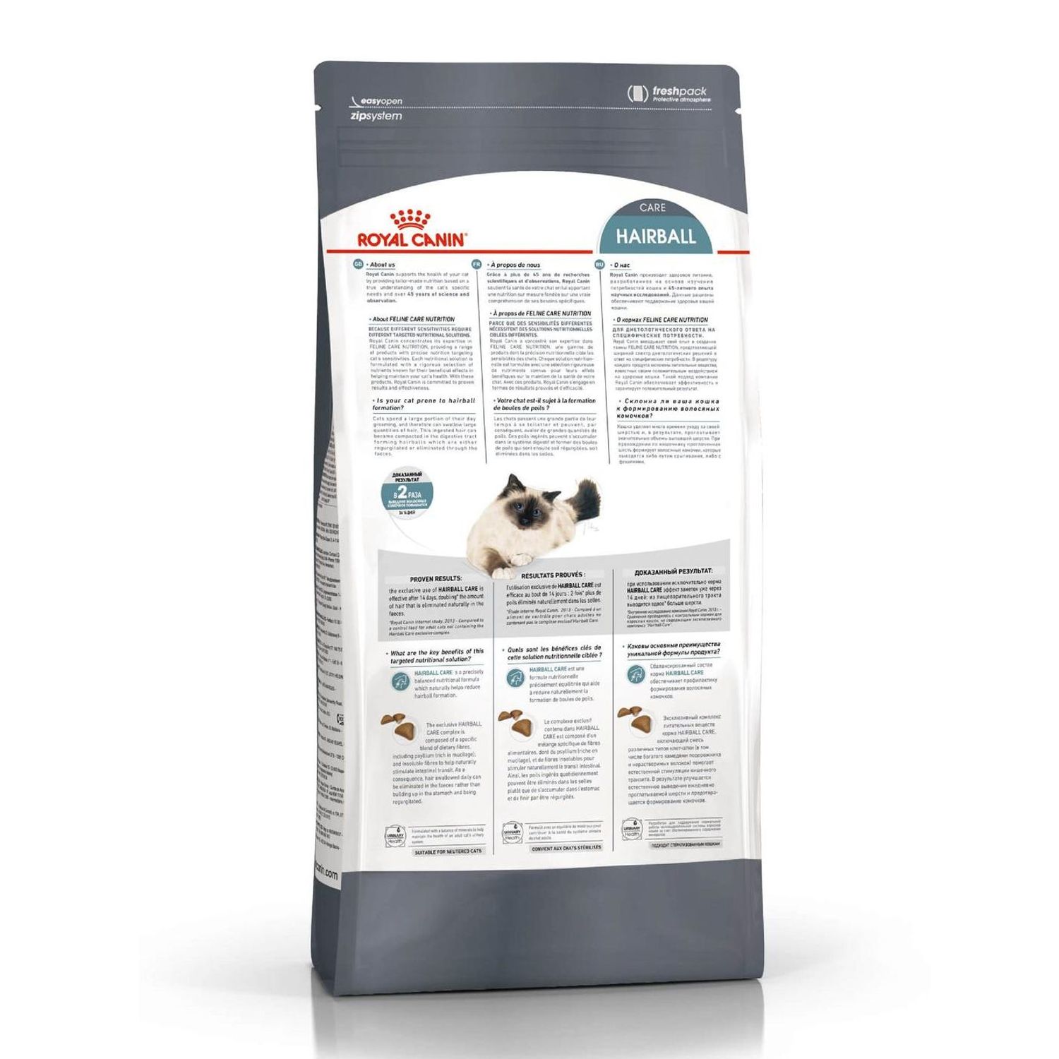 Сбалансированный состав корма Hairball Care обеспечивает профилактику формирования волосяных комочков. Эксклюзивный комплекс питательных веществ корма Hairball Care, включающий смесь различных типов клетчатки (в том числе богатого камедями подорожника и нерастворимых волокон) помогает естественной стимуляции кишечного транзита. В результате улучшается естественное выведение ежедневно проглатываемой шерсти и предотвращается формирование комочков.