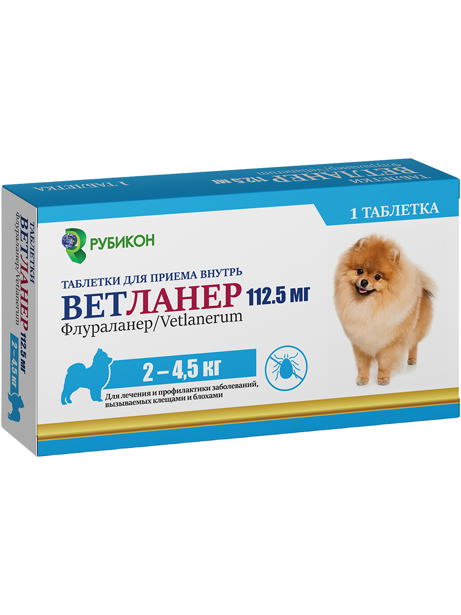 Для собак весом 2-4,5 кг используют 1 таб. Ветланер 112,5 мг.
